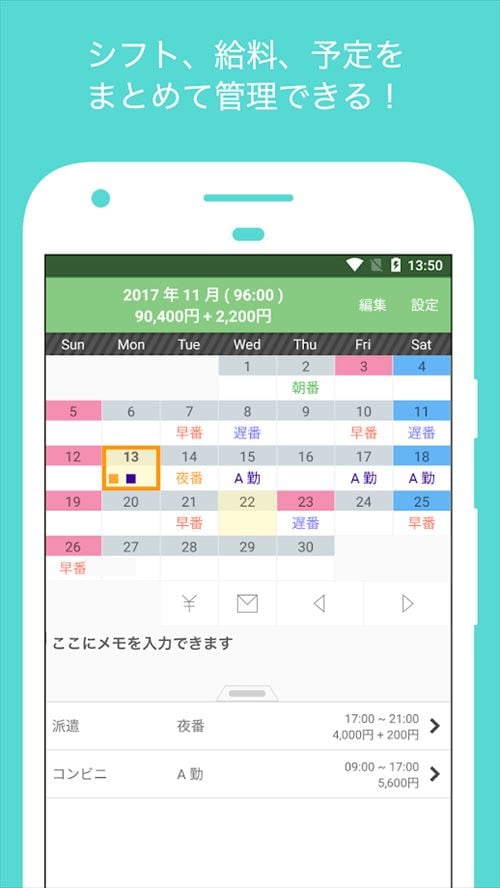 シフト手帳 Pro 【価格:無料】