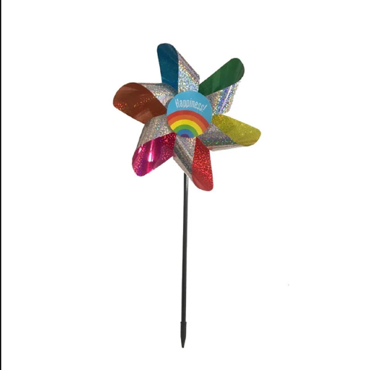 商品名は「レインボー風車(キラキラ)」です。名称に鳥よけなどの言葉は入っていませんが、ダイソー公式オンラインでは園芸用品にカテゴライズされていて、商品説明にも「モグラ除けや鳥害よけ」とあるので安心して使えます。