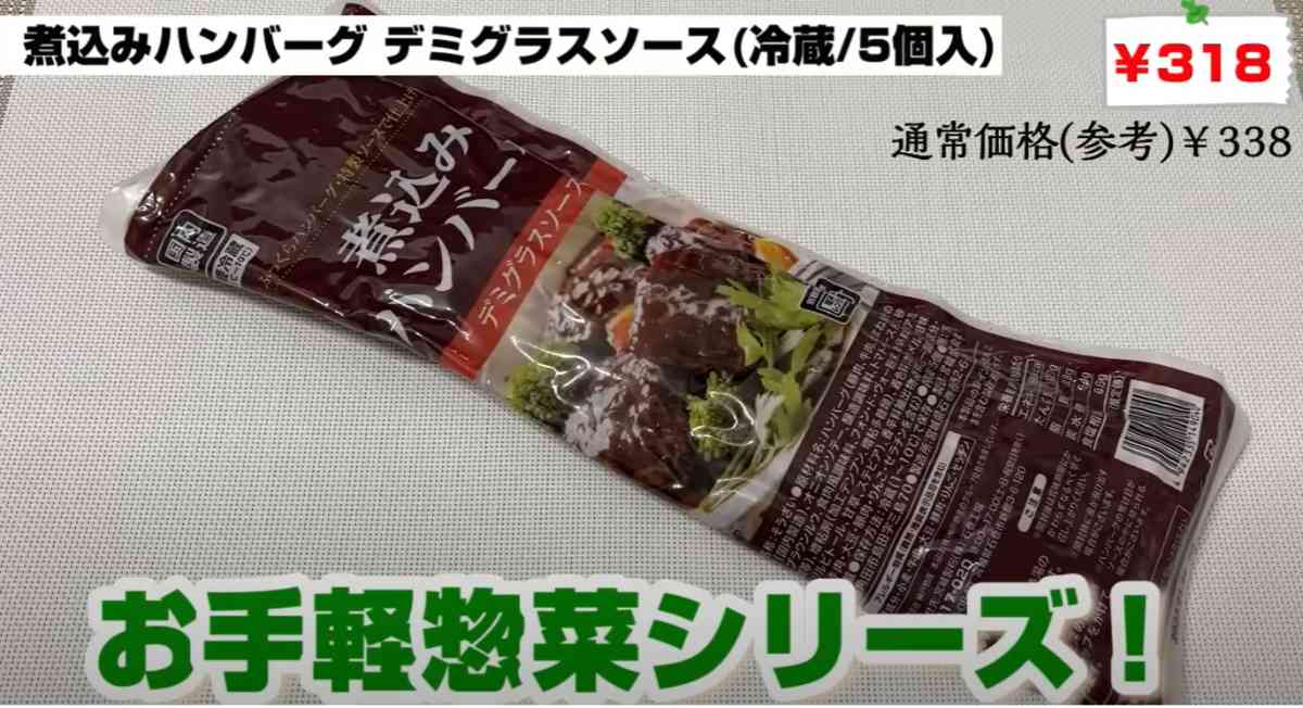 最後にご紹介するのは、業務スーパーで人気のチルドのお惣菜「煮込みハンバーグ(デミグラスソース)」です。濃厚なソースとふわふわ食感のハンバーグは、お弁当のおかずとしてぴったり! セール期間中はハイコスパで買えるので必見なのだそう。