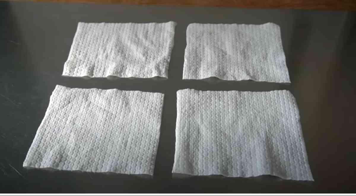 何度か洗って繰り返し使ったら、そこからが勝負! 使い古したキッチンペーパーを豆腐パックのサイズに合わせてカットすれば、ウエスとして活用することができます。