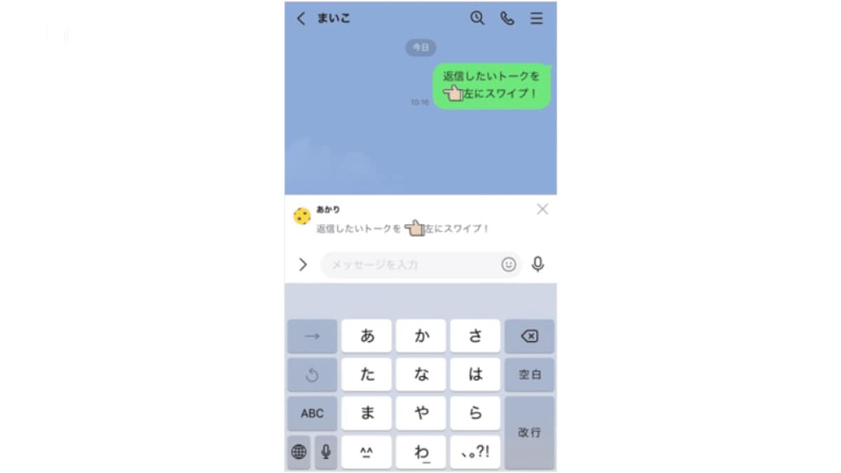 3.特定のメッセージへ即返信「左スワイプ」
