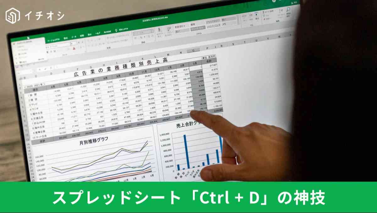 数式やデータを下のセルにコピーする際、セルの右下をマウスで掴んで、ズズズッと下までドラッグしていませんか? 行数が数千行ある場合、その操作は指への負担も大きく、行き過ぎて戻るなどのロスも発生します。実は、一瞬で選択範囲の下までデータを埋めるショートカットがあります。これを使えば、スクロールの待ち時間から解放され、作業が一瞬で完了します。(Windows PC版 Chrome等の場合)