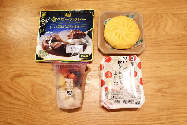 (1)レンチン! 金のビーフカレーを電子レンジで温めよう。使用するカレーは別のものでも構わないが、フルーツの酸味や甘みに負けないためにスパイスの効いたものを選ぶとよい