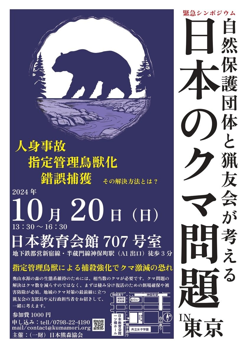 イベント名:緊急シンポジウム「自然保護団体と猟友会が考える日本のクマ問題」日時:10月20日(日) 13:30~16:30