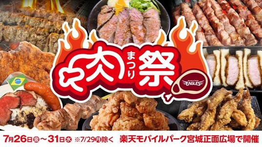 株式会社楽天野球団(本社:宮城県仙台市宮城野区、代表取締役社長:森井 誠之)は、7月26日(金)~31日(水)楽天モバイルパーク宮城 正面広場において、『肉祭り』を開催することとなりましたので、お知らせいたします。