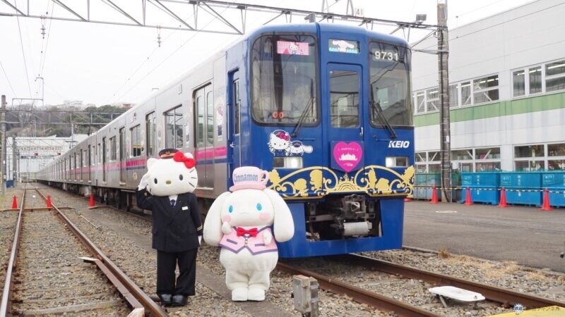 京王電鉄とサンリオエンターテイメントが多摩市と連携し、サンリオキャラクターのラッピングトレインをリニューアル。2025年3月10日の運行開始に先駆けて、東京都稲城市にある若葉台車両基地で8日、お披露目が行われました。多摩センター親善大使のハローキティやシナモロールも駆けつけました!