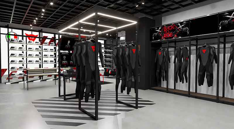 ダイネーゼ大阪は、イタリアの高品質なバイク、スキー、MTBウェアを提供するダイネーゼのアジアにおける旗艦店として、最新のプロテクション・テクノロジーとイタリアンデザインの魅力を体感できる特別な空間となっています。最新のCIを導入し、快適なラウンジスペースを完備。また、バレンティーノ・ロッシをはじめとするレジェンドライダー達のレーシングスーツを常時展示し、ダイネーゼブランドの豊かな歴史に触れることができます。