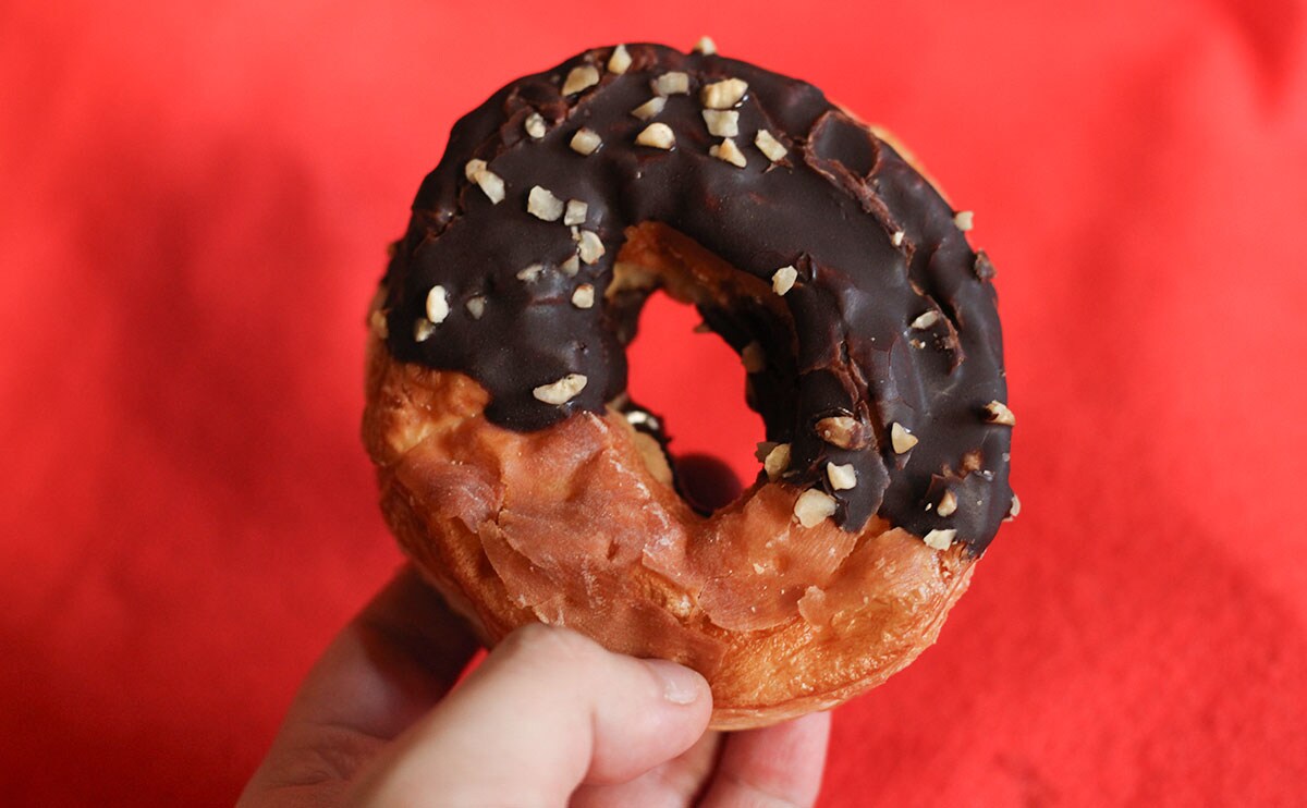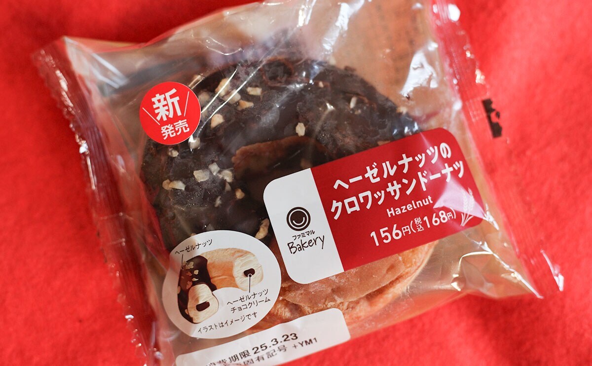 2025年3月18日(火)、ファミリーマートは、「ヘーゼルナッツのクロワッサンドーナツ」(税込168円)という新商品を発売しました。