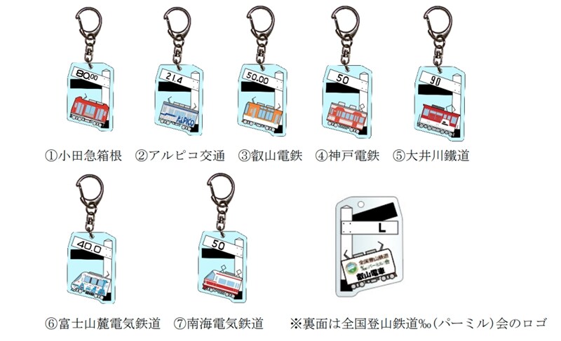 15周年記念グッズは、小田急箱根の3000形「アレグラ」、大鉄のED90形、南海の30000系「こうや」、神鉄の3000系といった各社の代表車両をあしらったキーホルダー。神戸のイベント会場のほか、メンバー各社の一部駅などで3月30日から販売する。