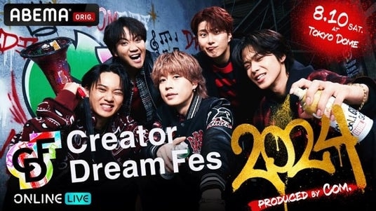 8月10日(土)に「ABEMA」が開催する『Creator Dream Fes 2024 ~produced by Com.~』は、地元の幼馴染で、中学生時代に同じバスケ部に所属していたやまとさん、ひゅうがさん、ゆうたさん、あむぎりさん、ゆうまさんでグループを結成したのち動画クリエイター界にとどまらない数々の快進撃を見せてきたコムドットによるライブイベントです。