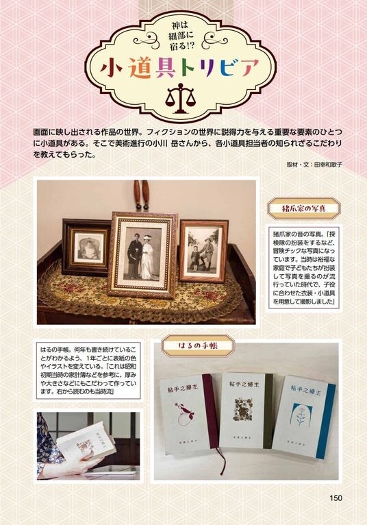 そのほか、美術セットや衣装をたっぷり掘り下げたページや、知られざる工夫が隠された小道具トリビアなど、読み応え満載の一冊。ぜひドラマと併せてお楽しみください。