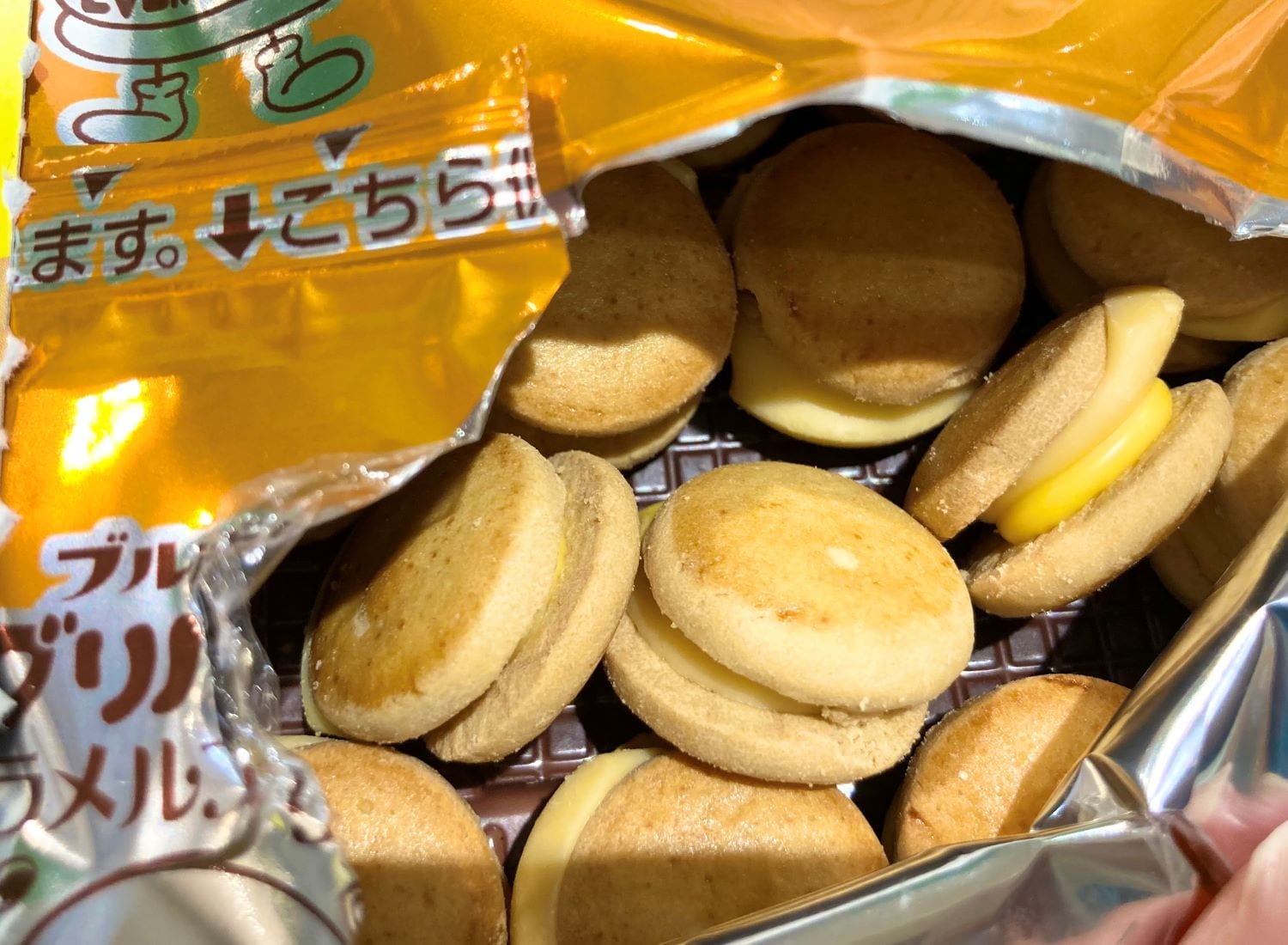 プリン風味のクリームを、カラメル風味のビスケットでサンドした小さな小さなハンバーガー。カルシウムたっぷりな点も魅力です。