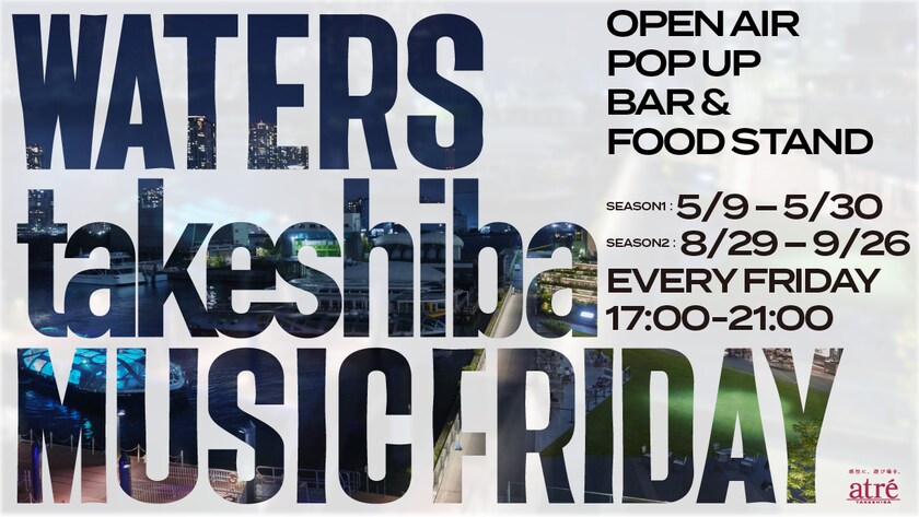 「WATERS takeshiba MUSIC FRIDAY」が、豊かな水辺時間を提供する体験型イベントとして、2025年5月9日(金)から5月30日(金)、そして8月29日(金)から9月26日(金)の期間、東京都港区海岸にある「アトレ竹芝」前のウォーターズ竹芝 プラザで毎週金曜日に開催されます。