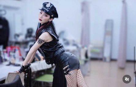 バッチリメイクに、「POLICE」と印字された制帽をかぶり、レザーのノースリーブのライダースジャケットにホットパンツを合わせた衣装を纏い、スラリと伸びる美脚には網タイツと編み上げブーツを履いたセクシーな姿を披露した。