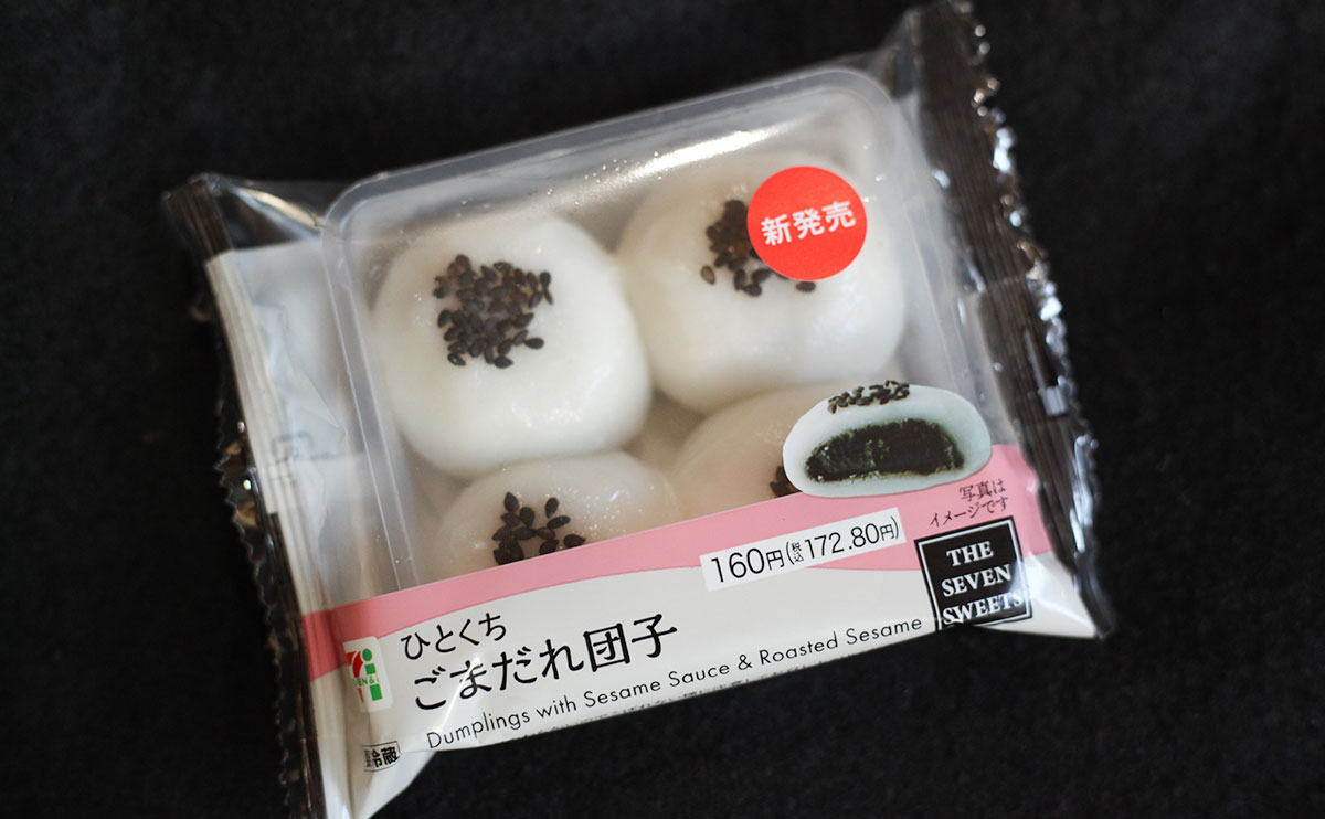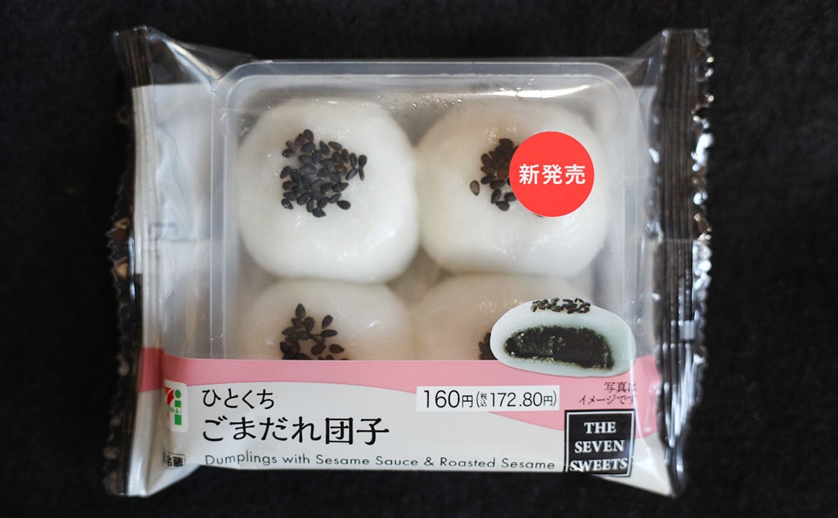 セブン-イレブンのウェブサイトによると、“もっちりとしたコシのある団子生地で、香ばしい黒ごまのたれをたっぷり包んだ商品”とのこと。1袋に4個入っています。