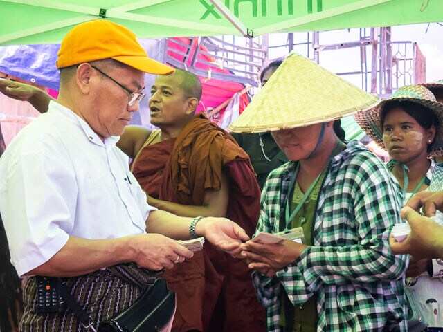 マンダレーのセインパン地区では、僧院が義援金を集め、僧侶自ら指揮して各世帯に渡していた
