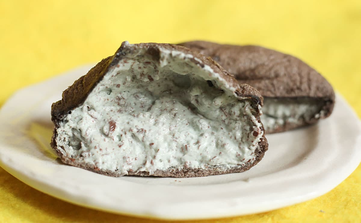 この商品は、“もちもち食感のココア風味の生地に、チョコフレークを混ぜ込んだ爽やかなミントクリームを詰めたシュークリーム”とのこと。チョコミントの爽やかさは、暑くてじめじめし始めるこの時季にぴったりですよね。