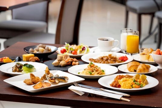 地産地消推進登録店として、朝食には新鮮な野菜類に、オリジナル朝カレー、煮込み料理など群馬県産食材をふんだんに用いた和洋のビュッフェスタイルで提供。皆さまに一日の活力と食べる歓びをお届けいたします。 時間 6:30a.m.~10:00a.m.(ラストオーダー 9:30)