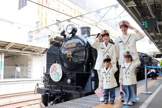 ・高崎駅ホームにて発車前にJR東日本駅長制服を着てSL前で記念撮影