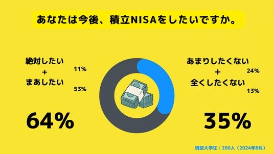 64%の大学生が、積立NISAを今後してみたいと回答。