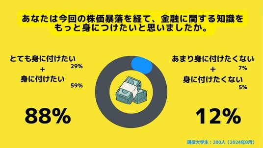 ■株価暴落を経て88%の大学生が金融に関する知識を「身につけたい」と思った。