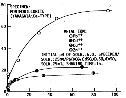 (引用)) 小野寺嘉郎:「粘土鉱物およびその他の土壌構成鉱物による重金属イオン吸着」日本鉱業会誌 97 1115 P36(1981)