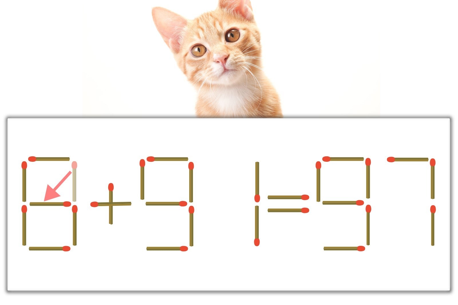 【問題】マッチ棒を1本動かして式を正しくしてください。