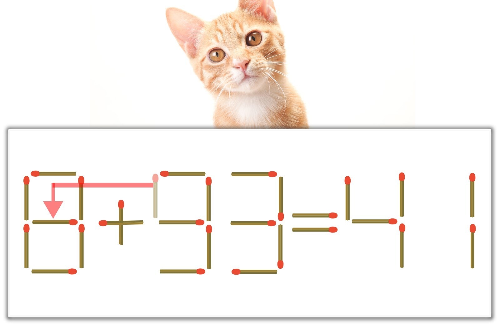 「9」を別の数字に変化させると答えが導き出せます。9のマッチ棒を1本移動させて、「0」を「8」にしてみましょう。すると、「8+33=41」が成立します。