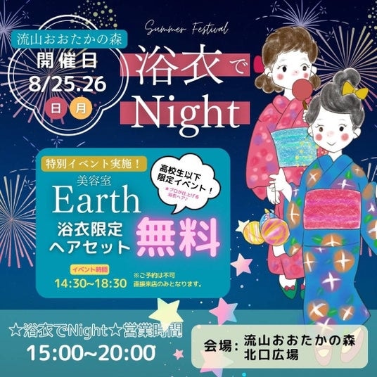 プロが仕上げる浴衣限定ヘアセット無料!(美容室Earth)