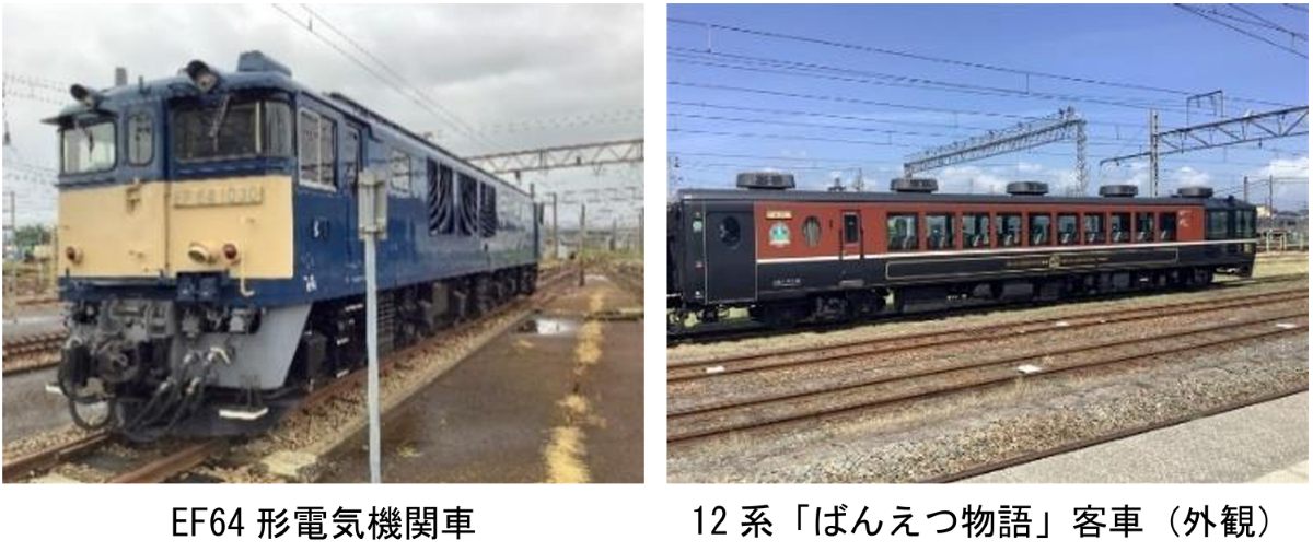 牽引するのは、国鉄時代から活躍するEF64形電気機関車です。編成は、EL(電気機関車)+「SLばんえつ物語」用の12系客車7両+ELで、電気機関車が前後に連結する「プッシュプル」方式でエスコートします