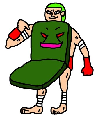 中西 私、家具店めぐりが大好きなんです。そこに展示されているソファーやベッドを「これは秒で寝れる!」「ゲームすんのに最適!」といろいろ試してみるのが楽しいんですよ。なかでも座椅子を見ることが多くて、そもそも座椅子は日本発祥の家具ですから、「これは超人化できる!」と考案したのが「ザ・ザイス」になります。とにかく、相手を座らせたら"勝確"とい最強超人です!