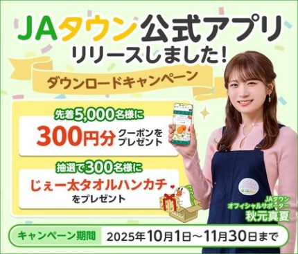 産地直送通販サイト「JAタウン」が公式アプリをリリース 先着5千人に300円分のクーポンをプレゼント