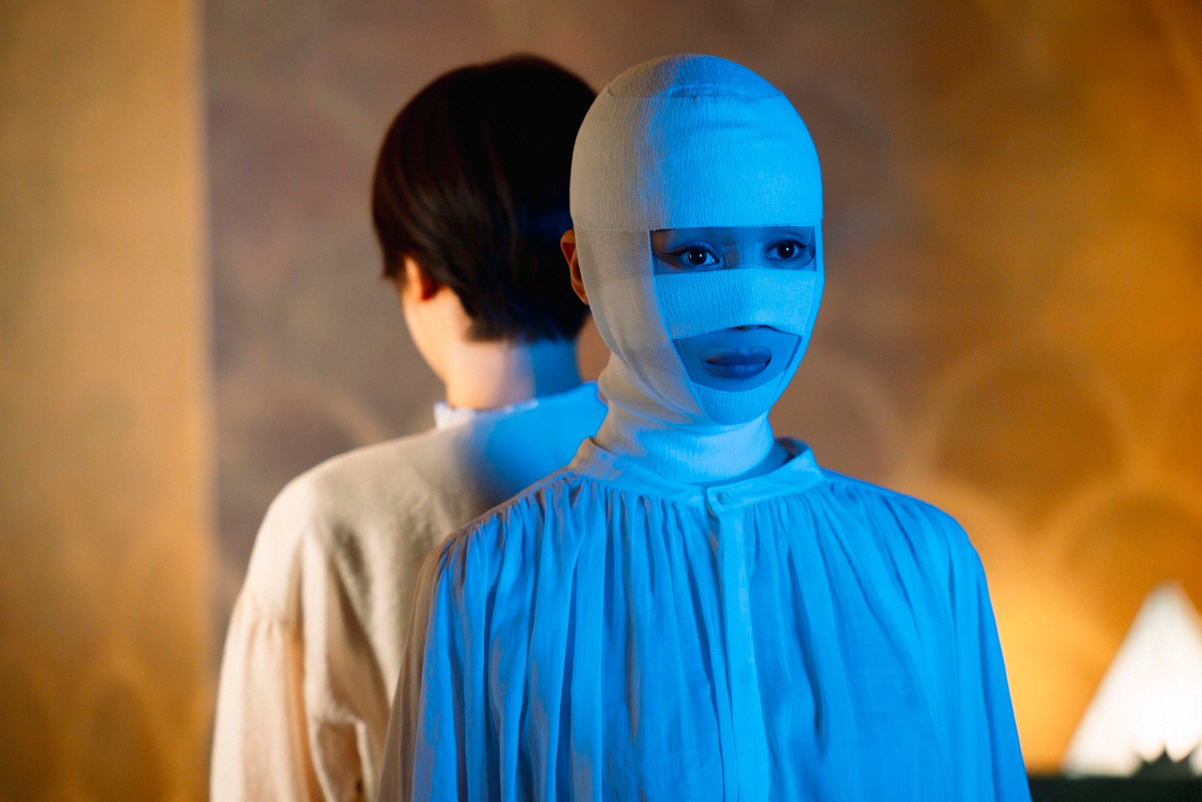包帯で顔を覆った衝撃的な姿のすみれ(トリンドル玲奈)