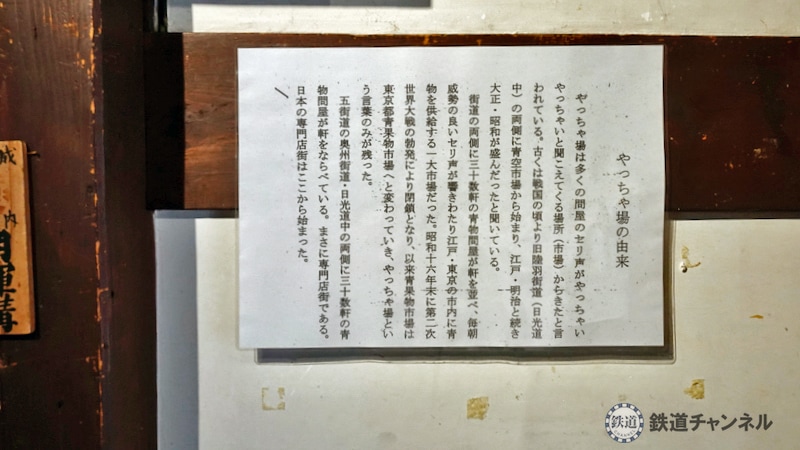書かれている文章は、「千住歴史プチテラス」で見た「やっちゃ場の由来」でした。
