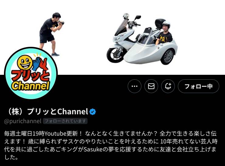 2022年10月、主要メンバーを含む5人が「方向性の違い」により一斉に卒業。その後は、Sasukeとあごキングの2人を中心を運営していましたが、今年7月に新体制へ移行し、チャンネルの運営を会社化させると発表。チャンネル名は「株式会社プリッとChannel」に変更されました。