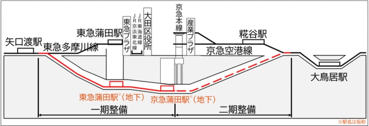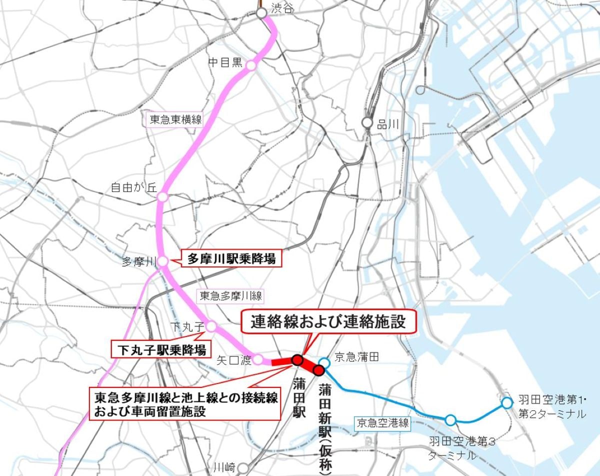 運行区間: 渋谷方面~多摩川駅~蒲田駅~蒲田新駅(仮称)