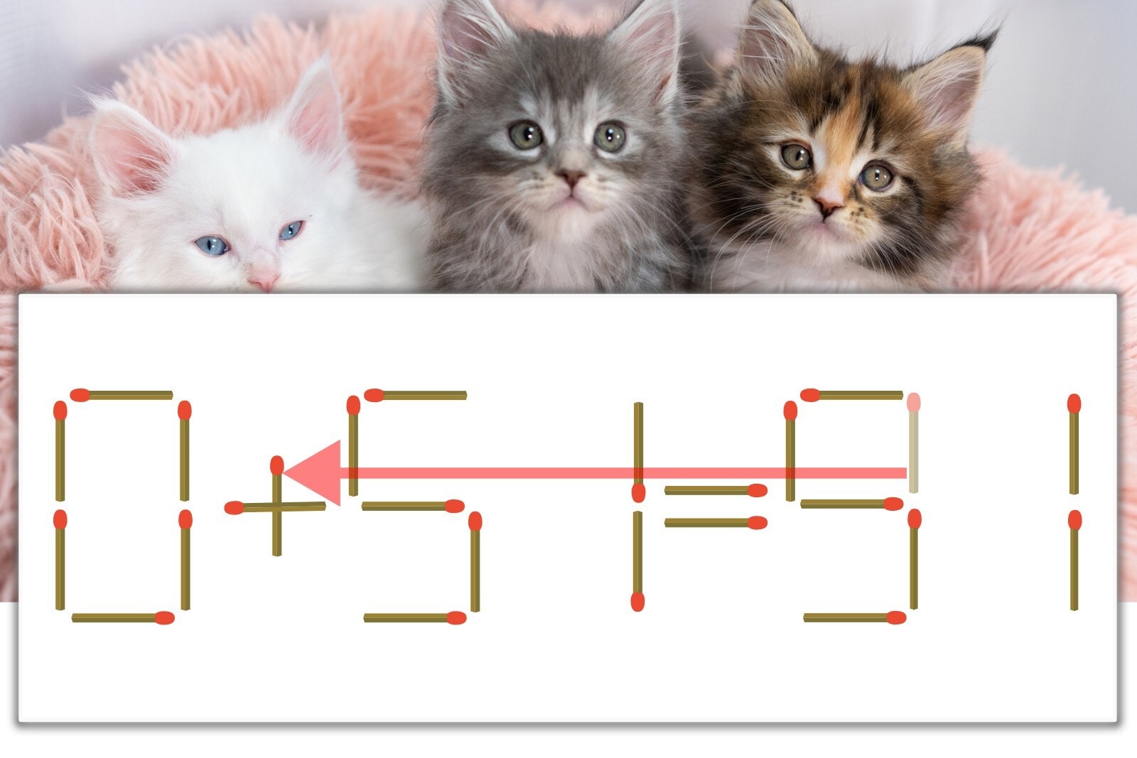 【問題】マッチ棒を1本動かして式を正しくしてください。