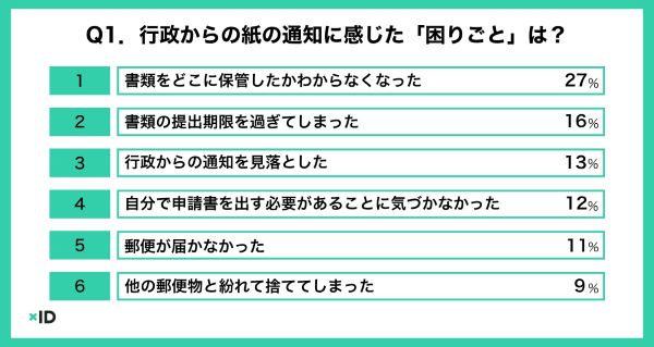 マイナンバーカードを持つ全国の20〜69歳の724人を対象に、8月15日〜9月2日に調査を実施。通知の紛失や見落としなど、行政からの紙の通知に起因するトラブルを約半数の人が経験していた。特に「保管場所が分からなくなった」人が多く、管理の煩雑さが浮き彫り。この点、69.6%の人が「スマホ通知であれば防げた」と回答し、デジタル通知への期待が明確になっている。通知アプリに求められる機能は見落とし防止(55%)、次いで記録保持(47%)、期限忘れ防止(33%)だった。
