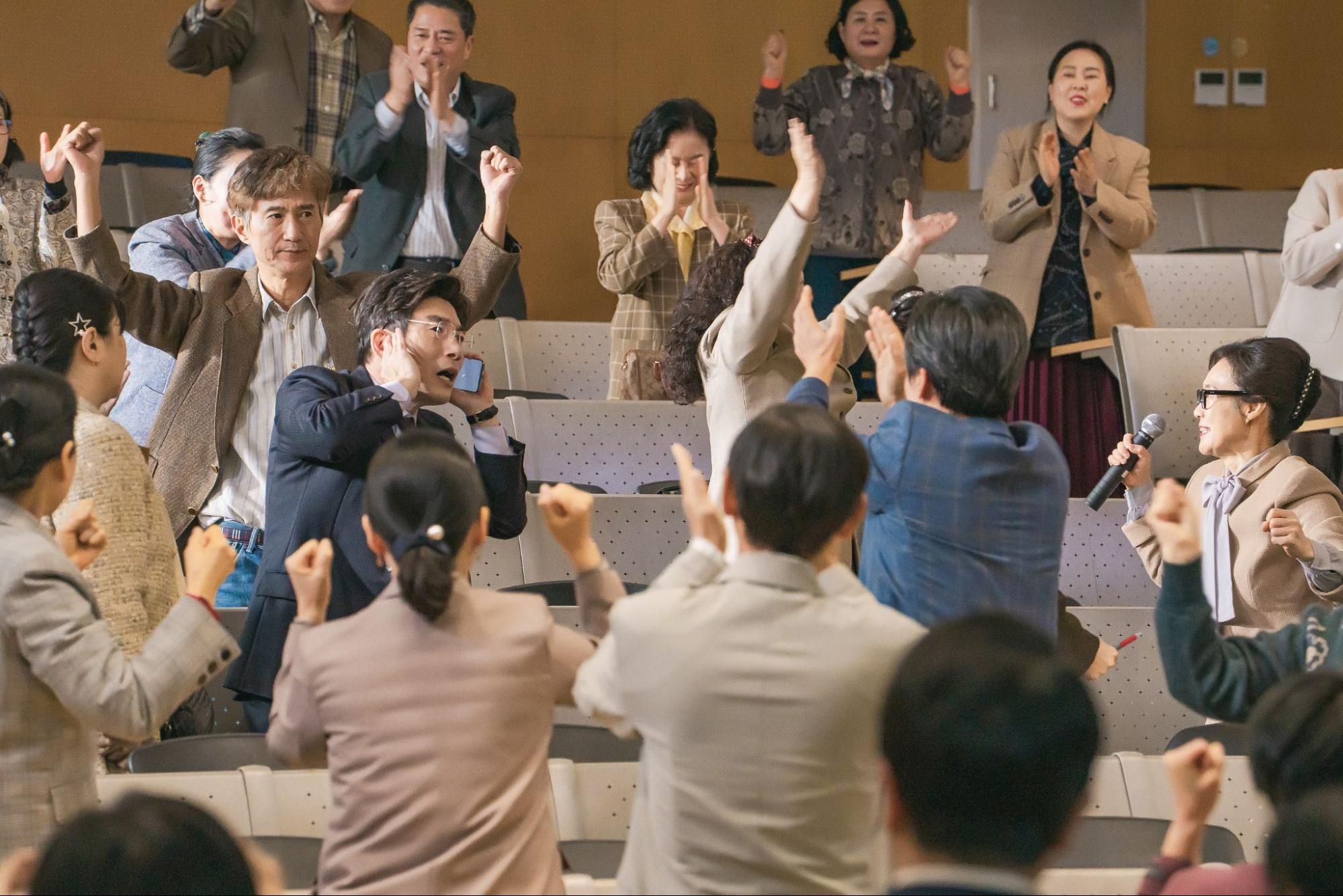ムジン(チョン・ギョンホ)とともに労働組合を創立する清掃員たち