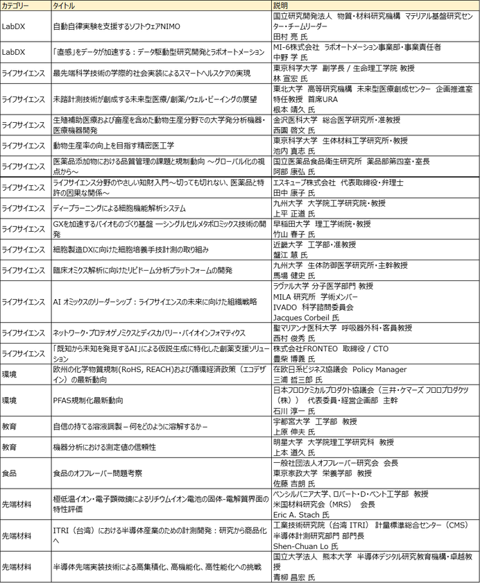 今回公開されたのは、「JASISトピックスセミナー」の20タイトル以上の動画です。これらは専門家や有識者による講演・解説で、分析・科学機器の基礎的な知識や社会で求められる課題解決に焦点をあてています。また、このセミナーは2025年9月3日から5日にかけて開催されたJASISでも行われ、約3,300名の聴講者を得るなど、人気の高いイベントです。まとめ