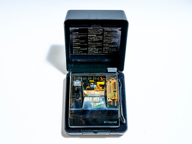 では、どうやってフィルムが感光しないようにしているのかといえば、フィルムを覆うふたを不透明の素材にしていました。ほかにも撮影に支障が出ないよう配慮して、スケルトンを実現しているようです。ただし、そういった実用性のない、単に構造を見ていただくための店頭ディスプレー用の非売品モデルも存在しました。