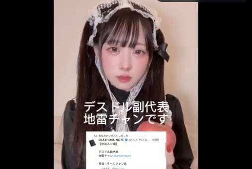 女性インフルエンサーの「地雷チャン」(登録者数7万人)が8日にXを更新し、自身が「DEATHDOL NOTE(デスドルノート)」の副代表であると名乗り出ました。