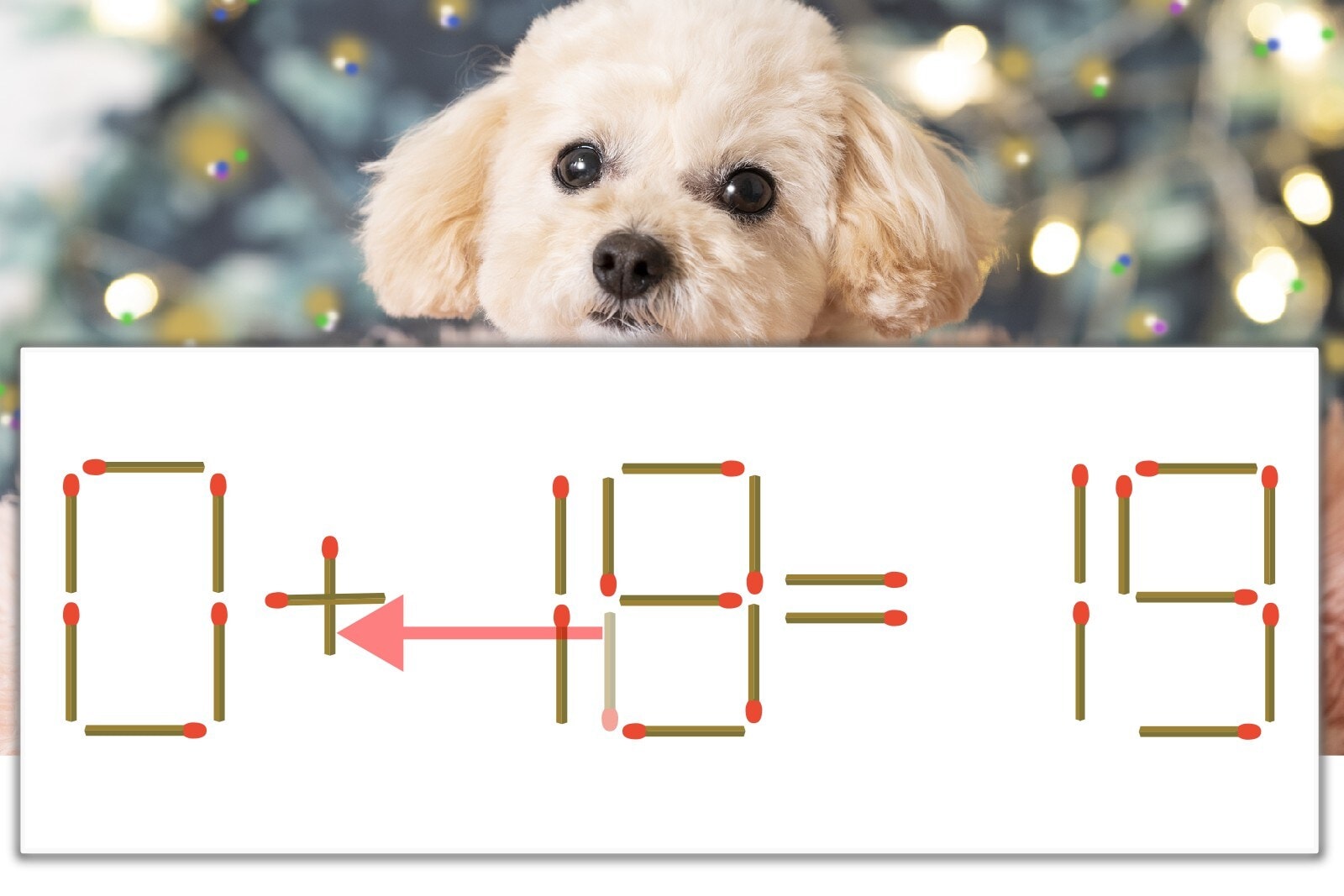 「8」を別の数字に変化させると答えが導き出せます。「8」のマッチ棒を1本移動して、「-」を「+」にしてみましょう。すると、「0+19=19」が成立します。