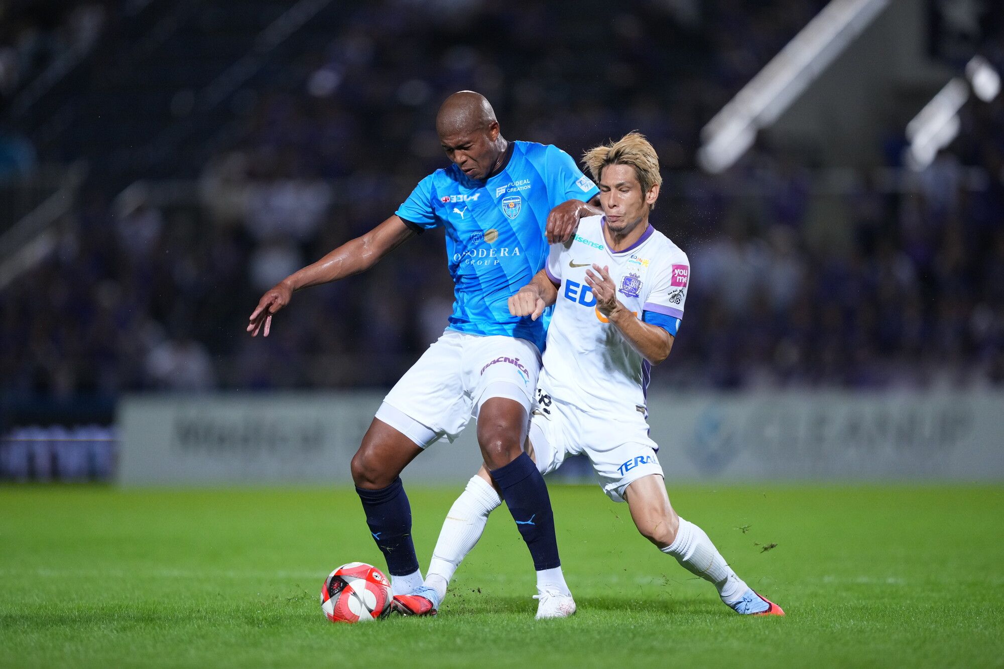 ホームの横浜FCはワントップの櫻川ソロモンを起点に攻撃を組み立てる。DFラインからロングボールを使い、ターゲットマンの櫻川がボールを収めて攻撃を展開。広島は塩谷司、荒木隼人、佐々木翔という経験豊富な3バックを中心に安定した守備を披露し、ボランチの田中聡を中心にセカンドボールを回収してチャンスの目を摘んでいく。