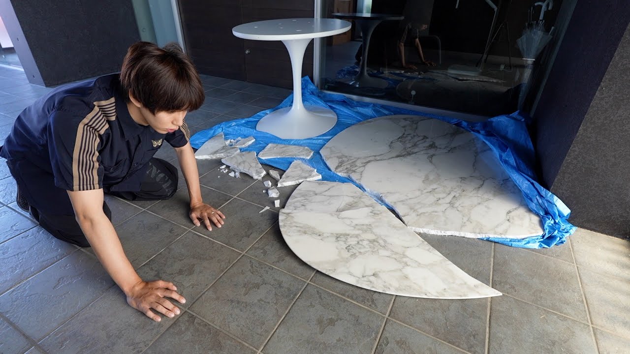 大理石のテーブルが割れる