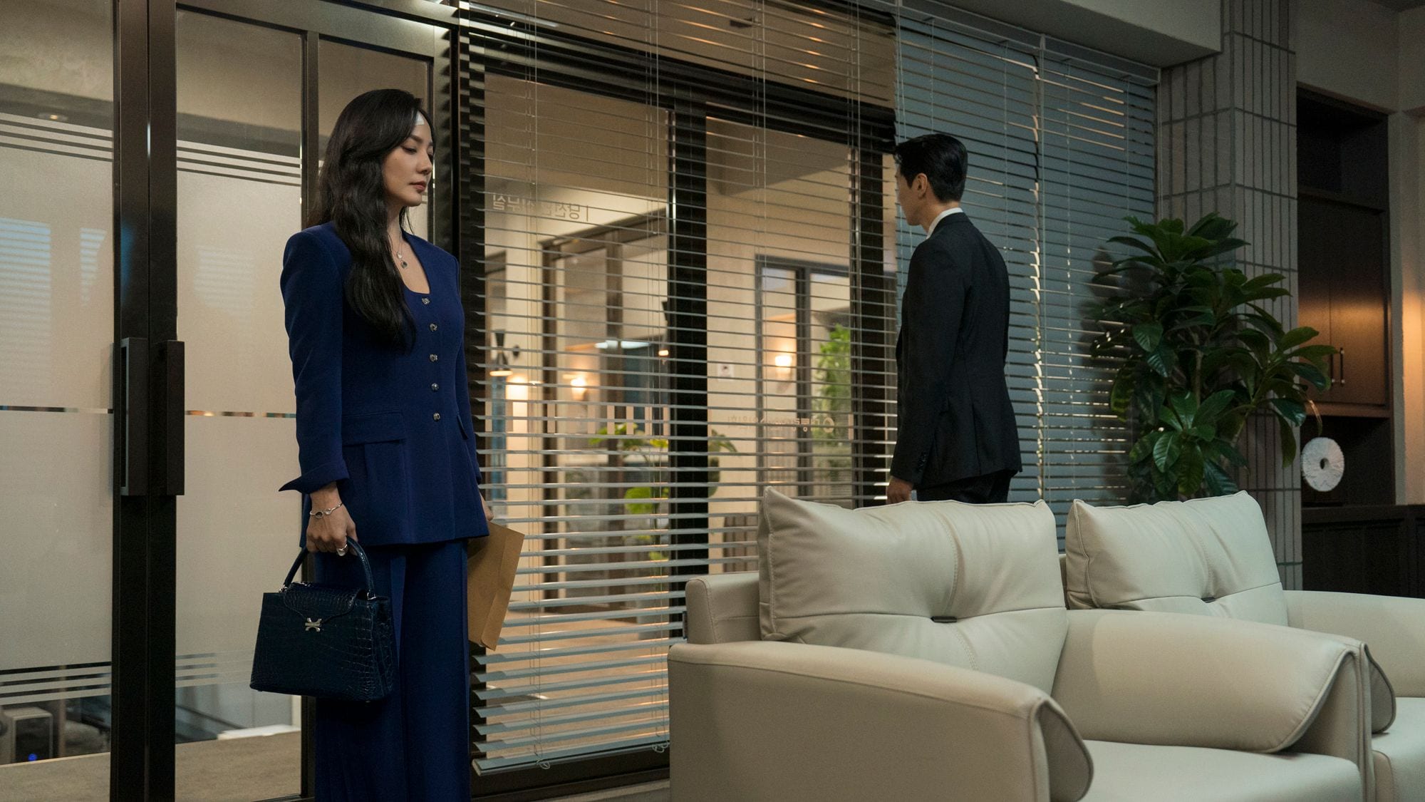 第3話では、スヨンが事故で7針も縫うけがを負った痛々しい姿でミンチョルの事務所へ。ミンチョルにあらためて「全て譲っても離婚は認めない」と伝え、シン・ヘリン秘書(イ・ミニョン)には今回の離婚劇を仕組んだ張本人なのではと疑う。