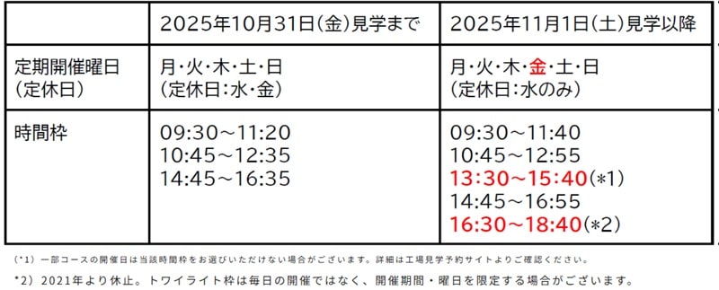 工場見学コースは110分のツアーでしたが、ミュージアムスペースを見学し、ショップで買い物をしているとあっという間に時間が経ってしまいます。「もっとミュージアムスペースを長く楽しみたい」という声が多かったことから、ミュージアムスペースの見学時間を20分拡大。見学やショッピングをゆっくりと楽しめます。
