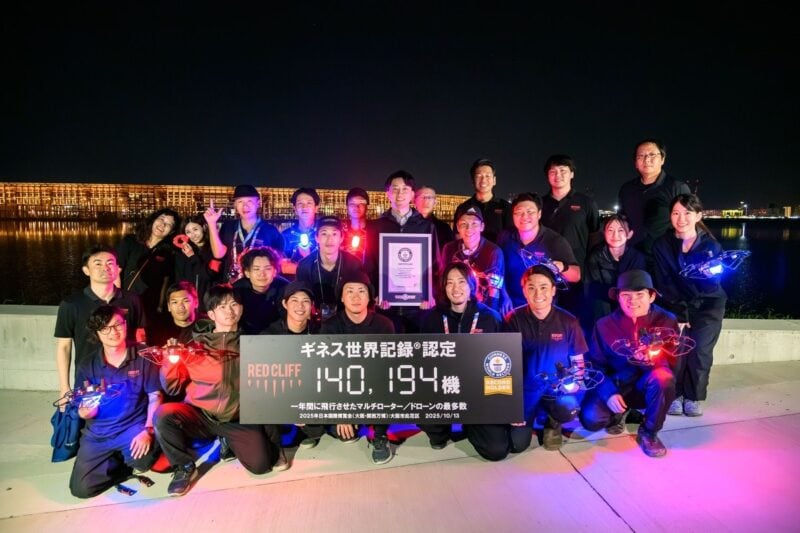 レッドクリフは、万博の準備期間を含む2025年3月17日~閉幕日の10月13日までの期間に、累計で140,194機ものドローンを飛行させました。この実績が評価され、「Most multirotors/drones launched in a year (一年間に飛行させたマルチローター/ドローンの最多数)」としてギネス世界記録に正式認定されました。この記録は、既存の記録を更新したものではなく、新たに設立されたカテゴリーでの初めての認定となります。