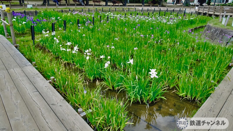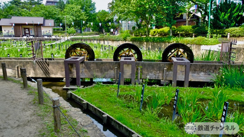 水を菖蒲畑に送っています。
