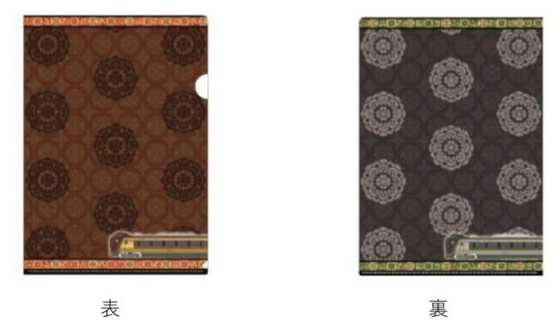 「A4クリアファイル(座席柄)」は、安寧・悠久編成の座席モケットのデザインを使用したクリアファイルで、乗車の記念に最適な一品。価格は385円(税込)です。